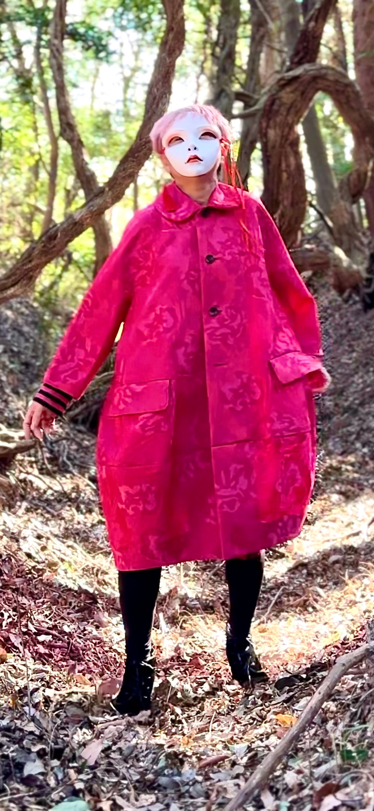 ウール素材で裏はありませんが、ギャルソンらしい布を織から作っているので、花柄は織りの模様となっています。