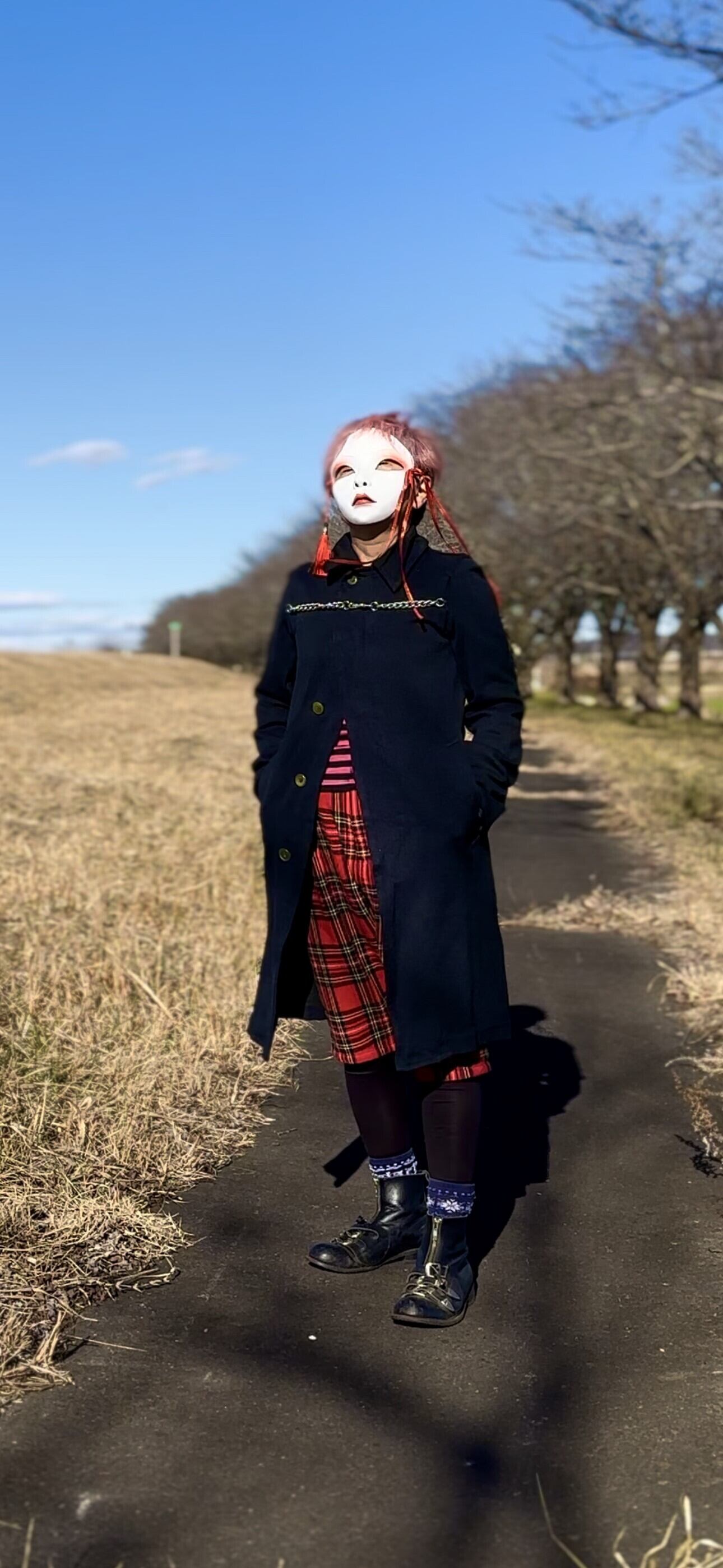 フロントのチェーンがポイント。ボタンは隠れるタイプです。シルエットはストレート。裾広がりはありません。上半身裏あり。